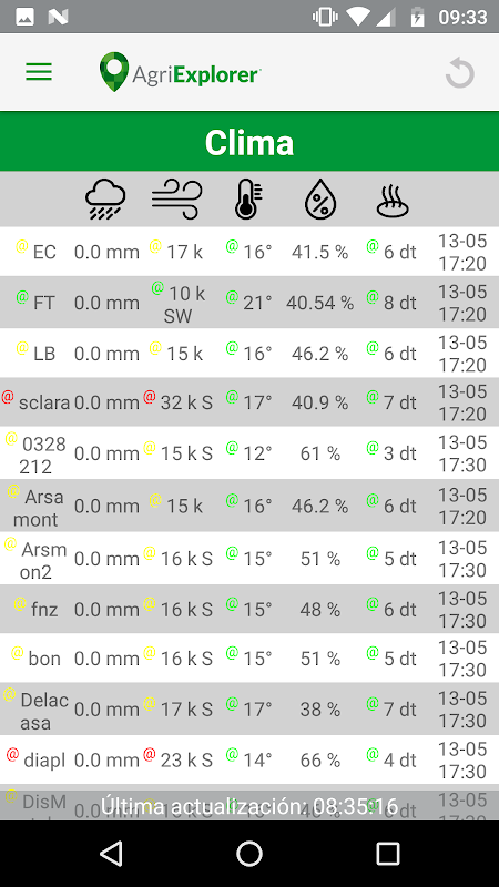 Con esta aplicación Ud. podrá visualizar la ubicación de las diferentes maquinas argricolas, asi como también un detalle de las diferentes mediciones (presión, dosis, flujo, consumo de combustible, rpm del motor, etc.).