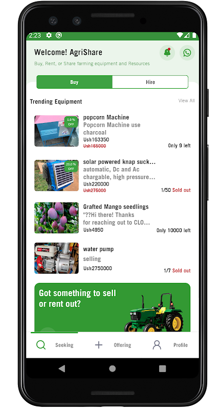 AgriShare adalah aplikasi untuk menyewa atau menyewakan peralatan pertanian di antara petani dan pengeluar peralatan dengan selamat dan dengan mudah.