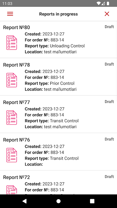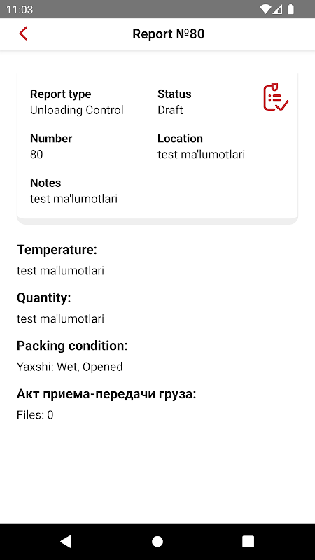Agrocheck App Functionality: The application is designed to ensure reliable control at every stage. Sellers, carriers, and buyers can use the app for quality control at different stages of product movement. Reports are created and stored in the app, where they can be edited and viewed. Completed reports can be downloaded in PDF format for further use.