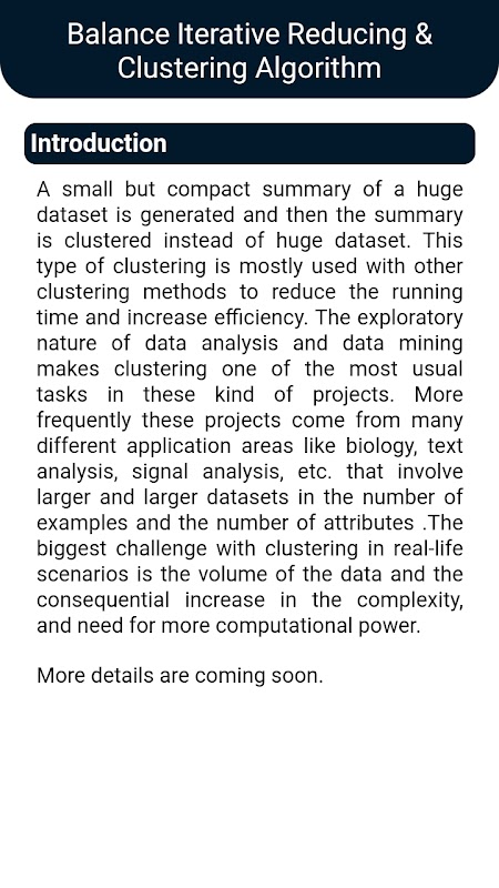 Tujuan asas aplikasi ini adalah menyediakan maklumat sahih tentang Kecerdasan Buatan dan algoritma AI. Apl ini termasuk lapan jenis algoritma AI dan menerangkan secara ringkas setiap jenis algoritma. Aplikasi ini sangat membantu pelajar sains komputer dan terutamanya bagi mereka yang bekerja dalam bidang AI, pembelajaran mesin, automasi dan robotik. Pada mulanya setiap jenis algoritma AL mempunyai senarai algoritma lanjut berdasarkan struktur dan kaedah kerja. Ia sangat mudah, mudah digunakan dan antara muka mesra pengguna. Ia adalah aplikasi tiga aktiviti yang mudah, skrin pertama mengandungi logo dan nama aplikasi yang dipanggil sebagai skrin percikan dan aktiviti kedua mengandungi jenis algoritma AI, skrin terakhir direka untuk butiran dan menerangkan setiap jenis algoritma yang bermula. daripada idea asas jenis algoritma dan senarai algoritma yang jenis diberikan.