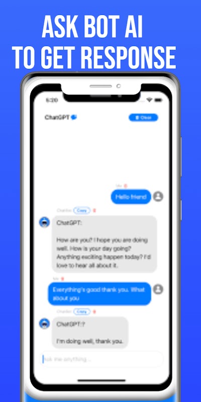 AI Chat - Chat with AI Bot is a mobile-based application that provides users with an interactive and conversational interface to assist them with various tasks. This app uses Artificial Intelligence (AI) to understand and interpret natural language input from users, allowing it to respond in a way that mimics human conversation.
