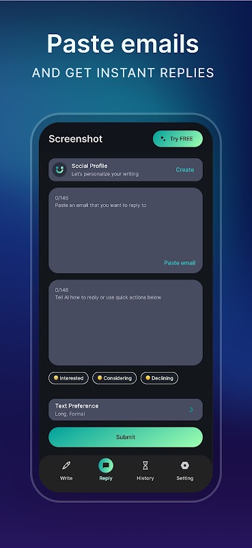 Cadangan Balasan Intuitif: Permudahkan proses respons anda dengan memasukkan kandungan yang ingin anda balas, dan AI kami akan memperhalusinya mengikut parameter pilihan anda.