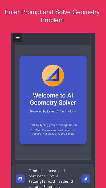 AI Geometry Solver ialah alat berkuasa AI termaju yang direka untuk membantu pelajar, guru dan profesional menyelesaikan masalah geometri dengan cepat dan tepat. Sama ada anda perlu mengira kawasan, perimeter, sudut atau menyelesaikan persamaan geometri yang kompleks, aplikasi ini menyediakan penyelesaian segera dan tepat.
