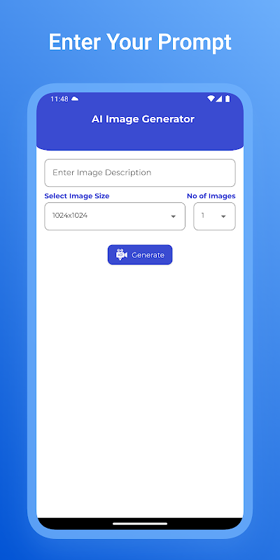 Biarkan imaginasi anda berjalan liar! Apl kami memberi anda kuasa untuk menghidupkan idea anda dengan menyediakan antara muka yang lancar untuk menjana imej berdasarkan gesaan anda. Sama ada anda mencari seni abstrak, landskap futuristik atau watak aneh, AI kami bersedia menghadapi cabaran.