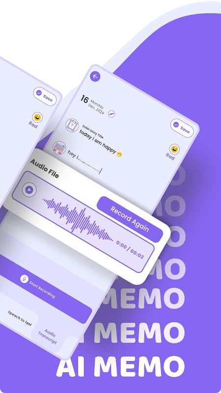 Revolusikan cara anda membuat jurnal! Rakam audio dan biarkan AI mengubahnya menjadi entri jurnal yang teratur. Sesuai untuk apabila inspirasi datang semasa dalam perjalanan.