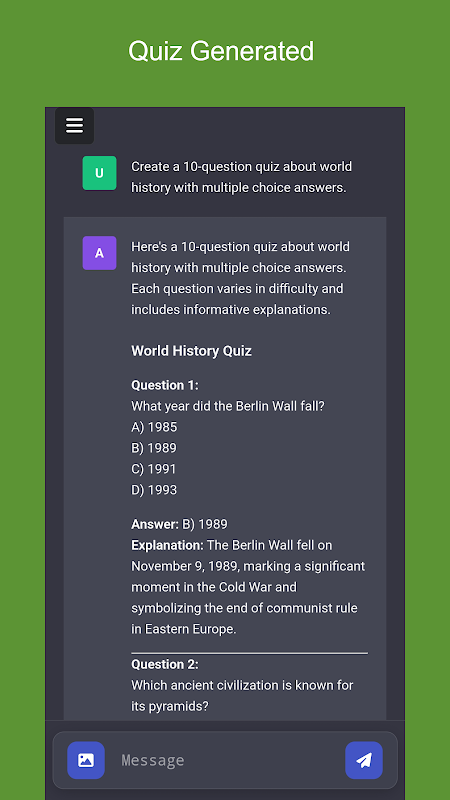 Platform Mesra Pengguna: Taipkan topik, dan apl akan menjana kuiz yang bagus untuk anda.