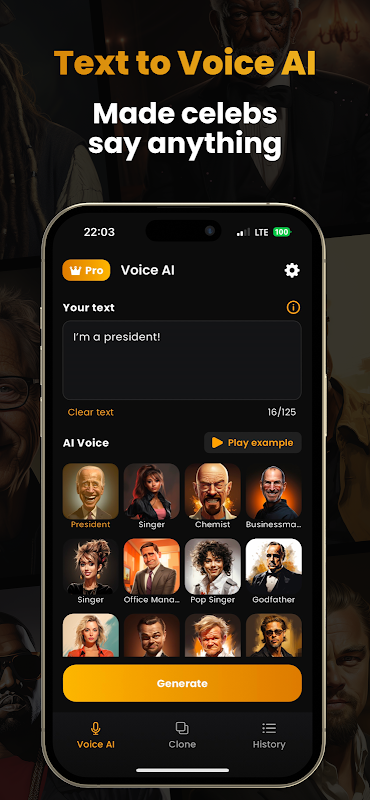 Penjana Suara Selebriti AI - Teks ke Suara. TTS - Teks ke Pertuturan & Klon Suara