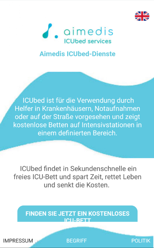 Enjin carian katil Aimedis ICU. Pengguna boleh mencari semua senarai Hospital. Radius ditetapkan 10 km pada mulanya. Lokasi pengguna dan Lokasi Hospital akan menandakan di peta. Apabila pengguna akan membuka aplikasi, lokasi semasanya akan dipaparkan, dan mencari dengan jarak radius 10 km.