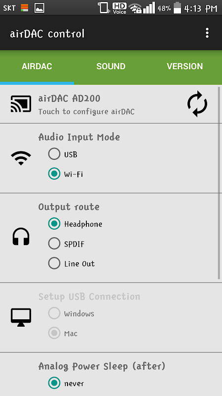 - Detail sound control for airDAC such as Radsone sound, H/W volume, Audio input, Output route control and many others.