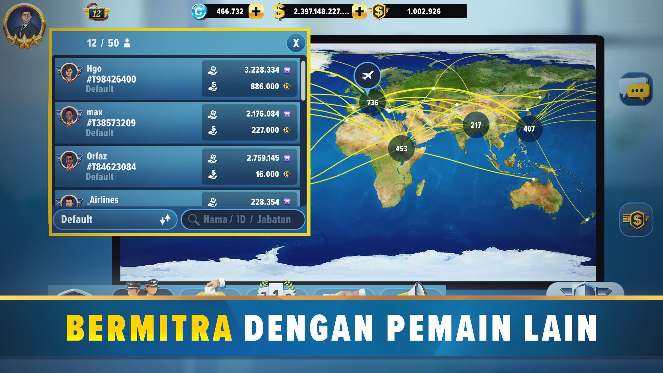 - Baik kamu adalah pemain kasual maupun ahli strategi canggih, Airlines Manager bisa disesuaikan dengan gaya bermainmu. Pilih mode permainan sederhana atau tingkat lanjut, dan nikmati game dalam 8 bahasa yang didukung, termasuk bahasa Inggris, Prancis, Spanyol, dan Jerman. Bergabunglah dengan komunitas solid yang berisi lebih dari 15 juta pemain di seluruh dunia — dan terhubung dengan sesama penggemar penerbangan di server Discord kami yang aktif!