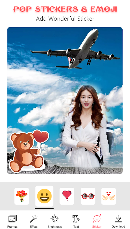 ✔Anda boleh menggunakan warna, kesan foto atau fon dengan mudah pada gambar anda dengan Bingkai Foto Pesawat.
