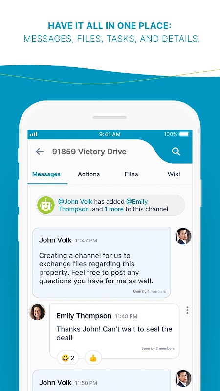 AirSend membawa semua yang anda perlukan untuk menyelesaikan kerja menjadi satu ruang kerja yang elegan. Tidak perlu bertukar antara aplikasi. Hantar mesej, buat panggilan suara / video, kongsi dan atur fail, dan selesaikan semua tindakan di satu tempat supaya anda dapat fokus pada perkara yang paling anda lakukan - membuat pelanggan gembira.
