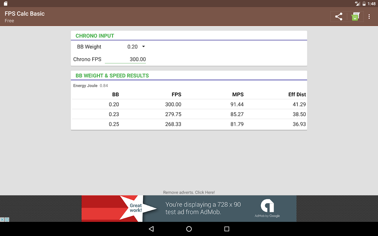 Then its converted to a table of BB Weights, FPS, MPS & Effective Distance in Meters.