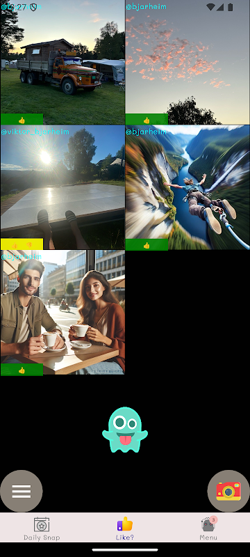 Suka?: Ambil foto dan hantarkannya. Rakan leret ke kanan untuk suka, kiri untuk tidak suka, atau ke atas untuk melangkau.