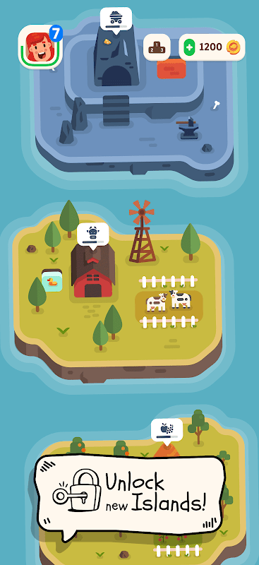 Anda akan memperoleh peti memburu harta karun, bahan lombong dan menuai sumber baharu sambil anda maju melalui pengembaraan yang hebat ini.