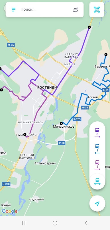 2) Lokasi - untuk paparan peta bandar/bandar yang betul, pengesanan automatik bas untuk kesederhanaan dan kemudahan pembayaran tambang (menentukan kod bas menggunakan lokasi GPS penumpang dan bas), membina laluan dari lokasi penumpang ke destinasi. Anda boleh memasukkan destinasi dan berlepas pada peta atau memasukkan alamat teks. Algoritma pembinaan laluan juga termasuk pemindahan.