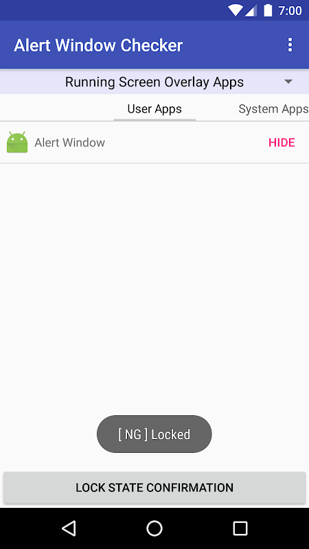 Aplikasi ini memeriksa aplikasi yang mempunyai "kebenaran SYSTEM_ALERT_WINDOW" dalam berjalan.