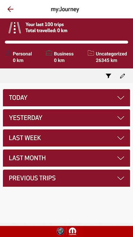 Perkhidmatan yang disertakan dalam Alfa Connect yang membolehkan anda melihat dan menguruskan perjalanan anda melalui aplikasi Alfa Connect.