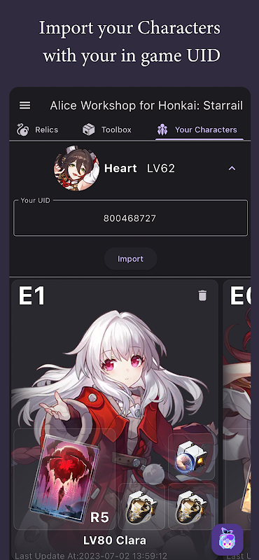 Anda boleh mengimport data watak anda hanya melalui UID dalam permainan anda.