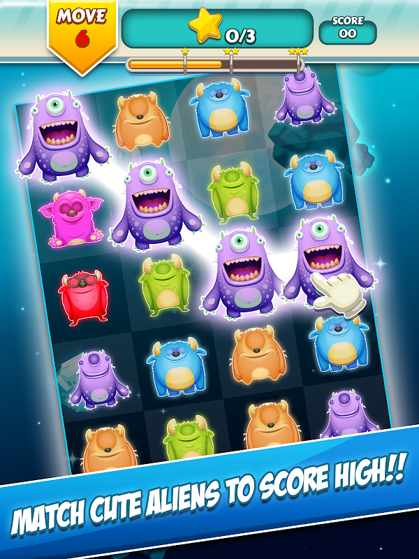Match Aliens greedy and have fun obsidian! Eliminate all obstacles and let the Aliens fall.