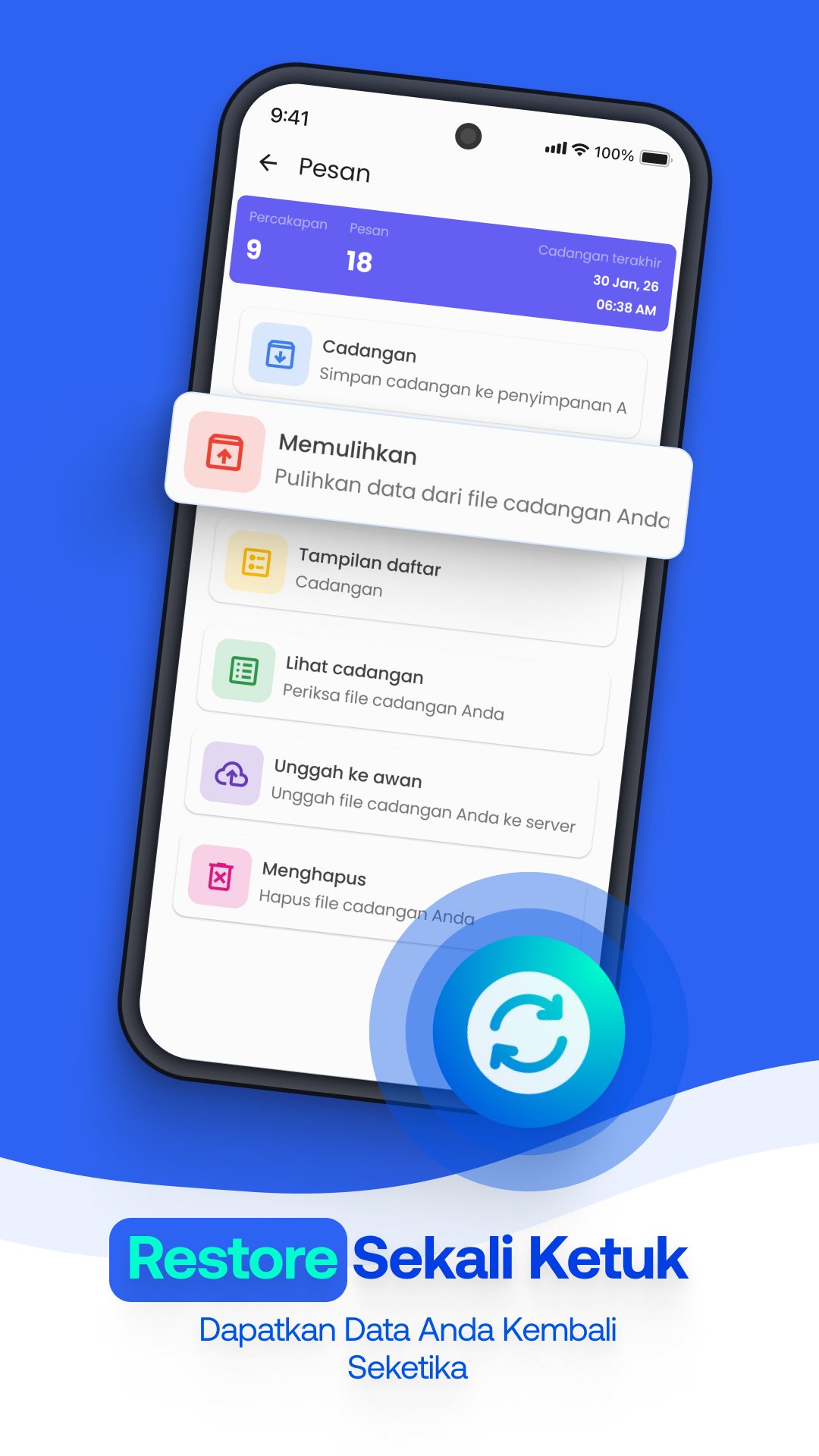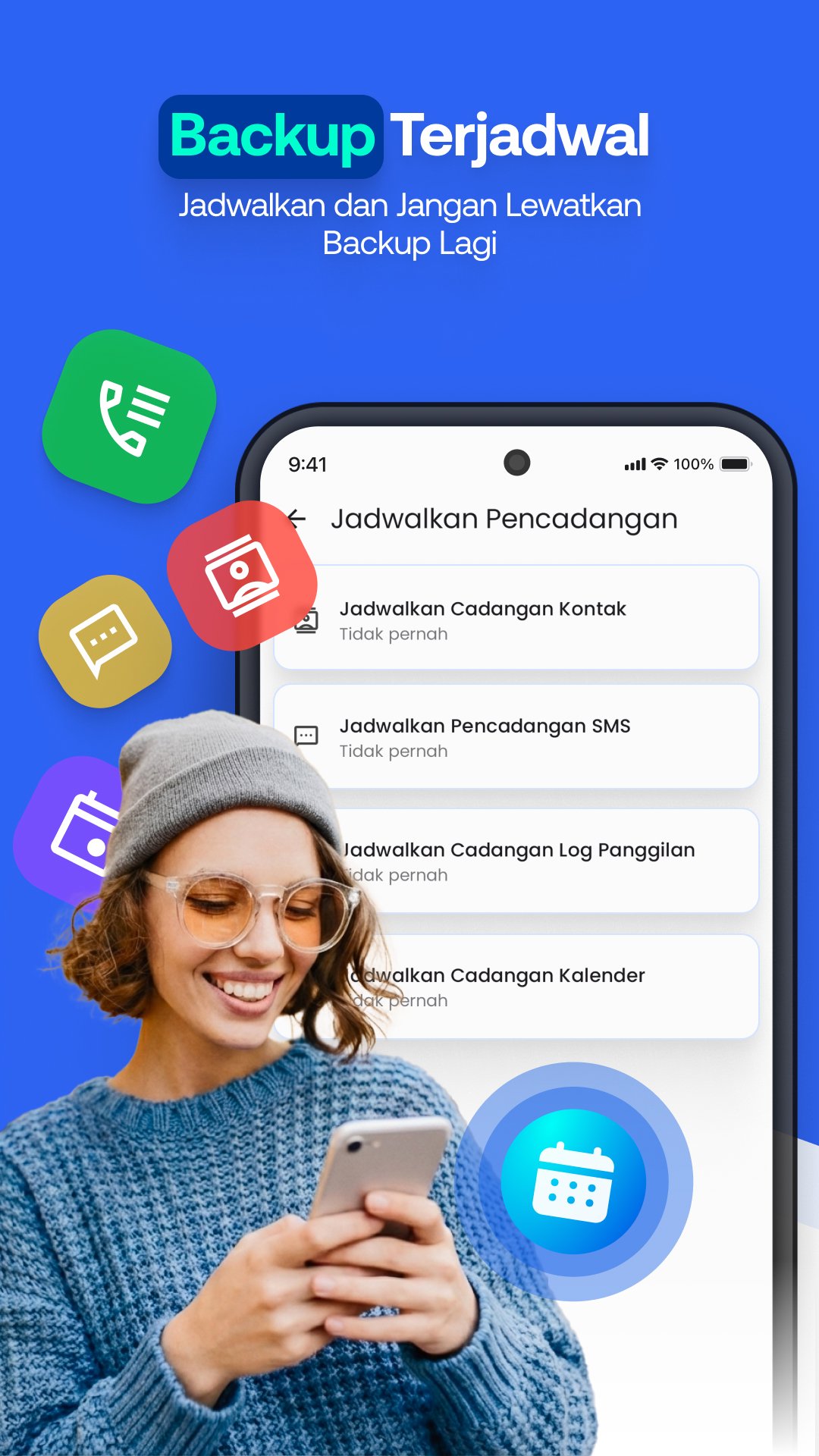 Backup kontak, backup SMS (pesan + MMS), riwayat panggilan dan kalender — lindungi data penting HP kamu dengan backup dan restore. Pilih backup lokal, backup kartu SD atau backup cloud dan restore cepat saat dibutuhkan. Tanpa root — mulai backup mudah sekarang!
