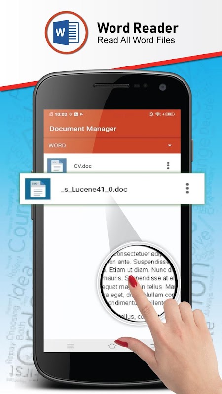 View all files with all document reader & manage docx pptx xlsx and pdf files.