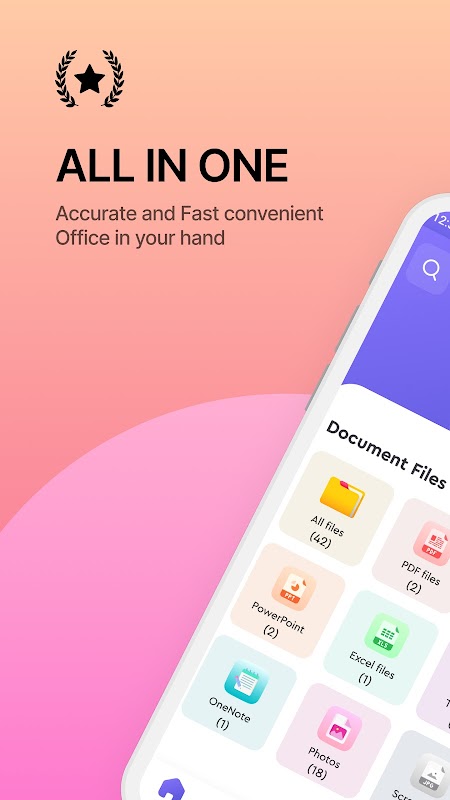 Cuba Semua Pembaca dan Pemapar dokumen Pemapar fail semua-dalam-satu ini sangat serasi dengan semua fail Office, membantu anda memproses fail dengan mudah dalam semua format, seperti PDF, DOC, DOCX, XLS, XLXS, PPT, TXT, dsb. boleh mengimbas fail pada telefon anda secara automatik, menyusunnya di satu tempat ke dalam folder yang sepadan supaya anda boleh mencari dan melihatnya dengan mudah.