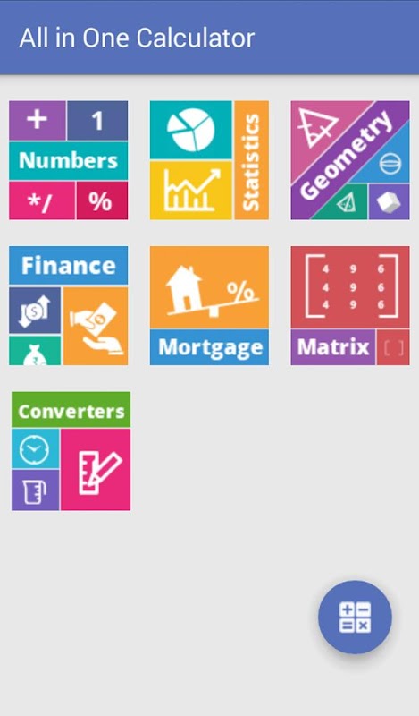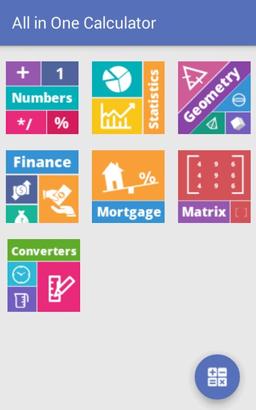 This all in one calculator is available for free download and is packed with calculators categorized under Finance, Mortgage, Statistics, Geometry, Matrix and Unit Conversion.