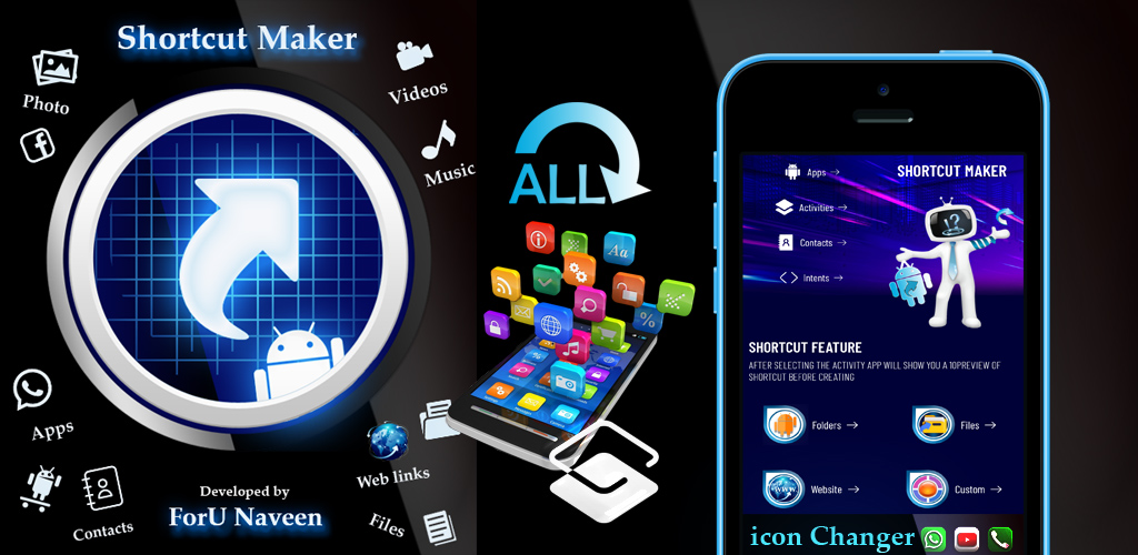 Adakah anda sedang mencari pintasan tersuai untuk skrin utama anda?. Cipta Semua dalam satu Pembuat Pintasan untuk Semua jenis fail, Kenalan, Foto, Video, Apl, pintasan pautan Web, pintasan pin sembang Kenalan Whatsapp untuk membuka aktiviti anda dengan pantas.