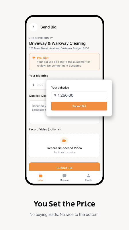 Dapatkan kerja sebenar daripada pemilik rumah sebenar. Tiada yuran petunjuk. Tiada pertanyaan palsu. Tiada kos pendahuluan untuk membida. AllBetter JobPro menghantar permintaan kerja yang disahkan terus ke telefon anda — anda menetapkan kadar anda, memilih kerja yang anda inginkan dan dibayar melalui escrow yang selamat.