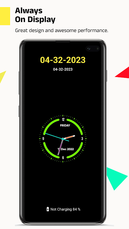 The best always on display app with lots of customization options. Get information such as time, date, battery percentage, notifications, etc. always on your screen with Always On Screen. Always On Screen app brings the always on display feature to your device. No need to turn your screen on again and again just to see the time or date.