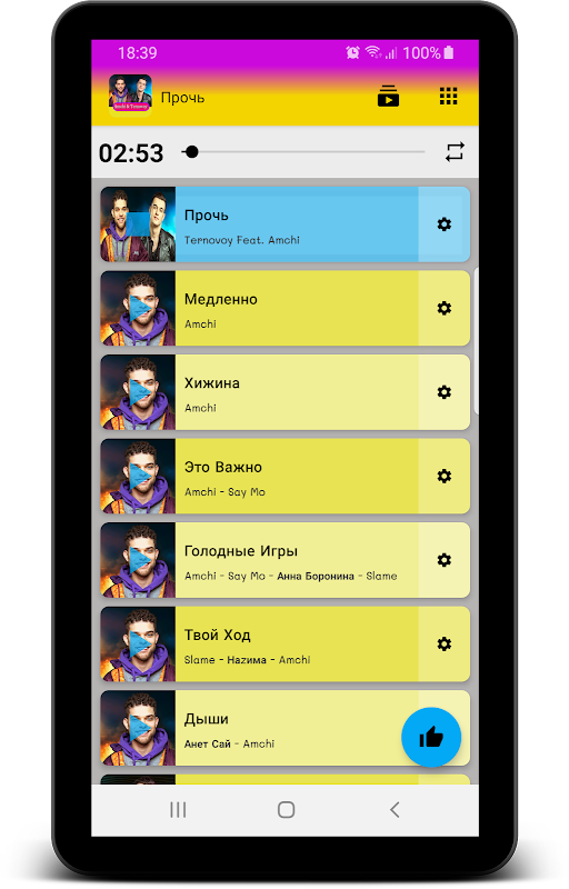 приложение "Amchi & Ternovoy песни - Прочь Не Онлайн" содержит лучшие песни Амчи и Терновой :