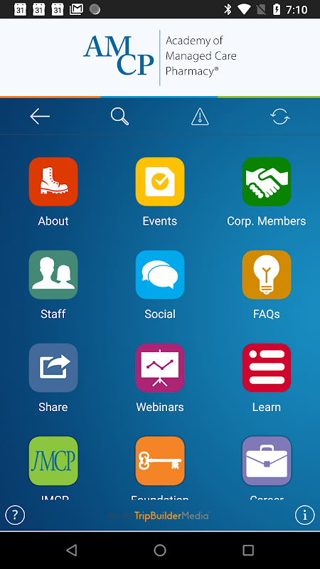 This TripBuilder Mobile 365™ app is provided at no charge by the Academy of Managed Care Pharmacy (AMCP). It was designed and developed by TripBuilder Media Inc. If you have any questions, or need any support regarding how to use this app, please submit a Support Ticket (located within the Help icon in the app).