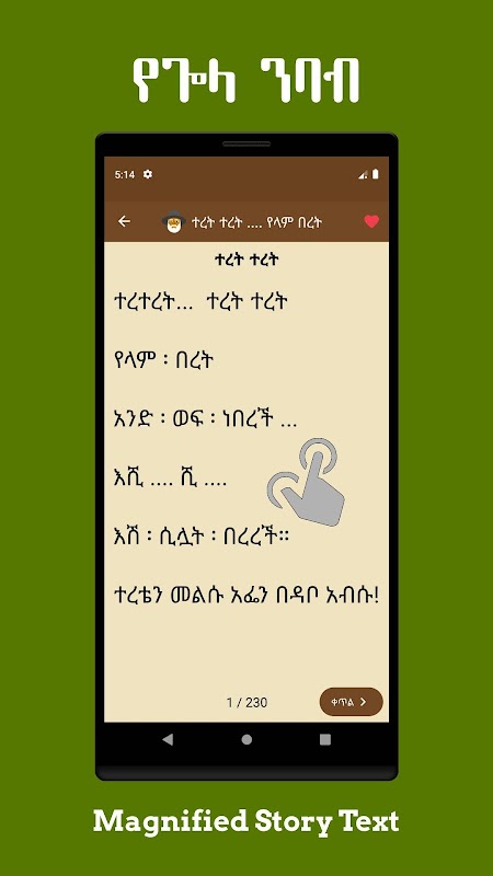 Aplikasi ini membolehkan anda menyemak imbas banyak dongeng Amharik yang boleh anda terokai dan mencipta koleksi kegemaran anda sendiri untuk dibaca semula kemudian.