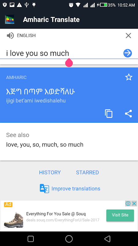 Terjemah Amharic ke Bahasa Inggeris dan pelbagai bahasa.