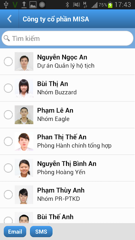 • Tra cứu danh bạ đồng nghiệp trong công ty, thêm vào danh bạ điện thoại.