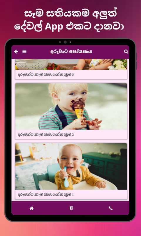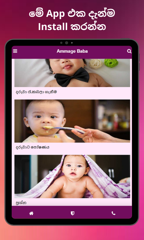 මේ Ammage Baba (අම්මගේ බබා) App එකෙන් ඔබේ දරුවා බලාගන්න අවශ්ය දැනුම, මගපෙන්වීම්, උපදෙස් ලබා දෙනවා.
