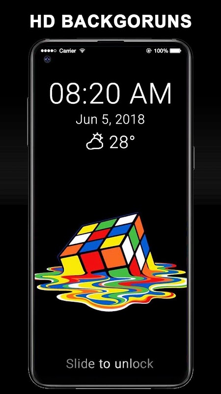Amoled Wallpapers HD Slide Unlock Screen will help you to lock your screen by passcode lock and make your screen looks like phone lock screen lock screen . Cool wallpapers and in the same time you save your privacy with this lock screen app, lock screen allow you to set a passcode to protect your privacy , or you can just using slide to unlock without pin code.
