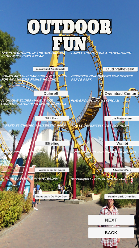 Senarai apl & menghubungkan pengguna dengan Makanan Baik, Kelab Malam, Keseronokan Dalam Ruangan, Keseronokan Luar, Taman Pemandangan & juga mempunyai ciri pemberitahuan untuk memberitahu anda serta-merta tentang jualan, keseronokan taman tema & makanan menakjubkan di Amsterdam & banyak lagi.
