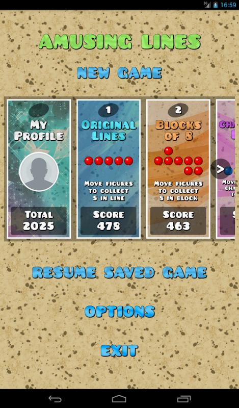Amusing Lines is a logical puzzle game with original idea to change colors of figures. The goal is to get as much points as you can, cleaning figures from table. It contains 5 different games:
