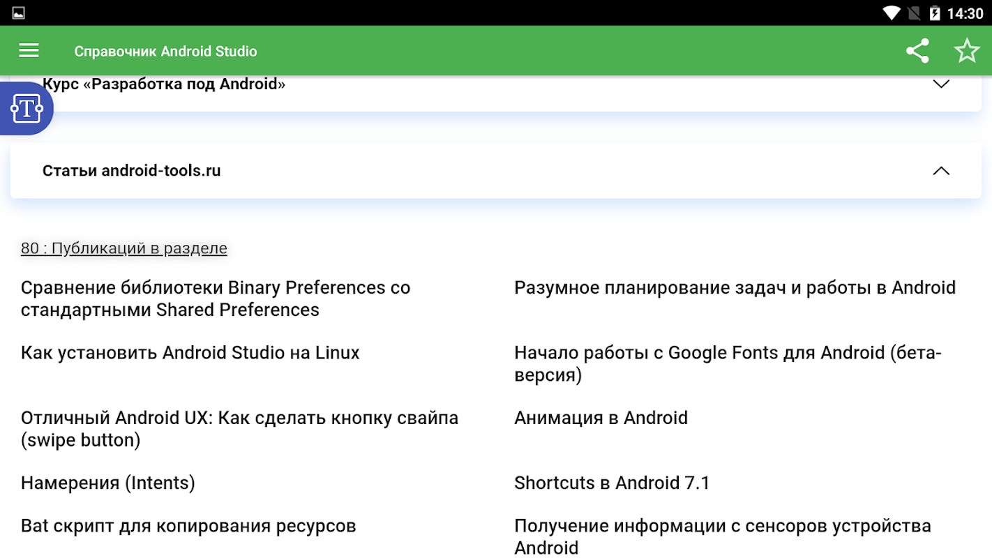 Kursus, artikel dan contoh perkembangan aplikasi untuk peranti Android.