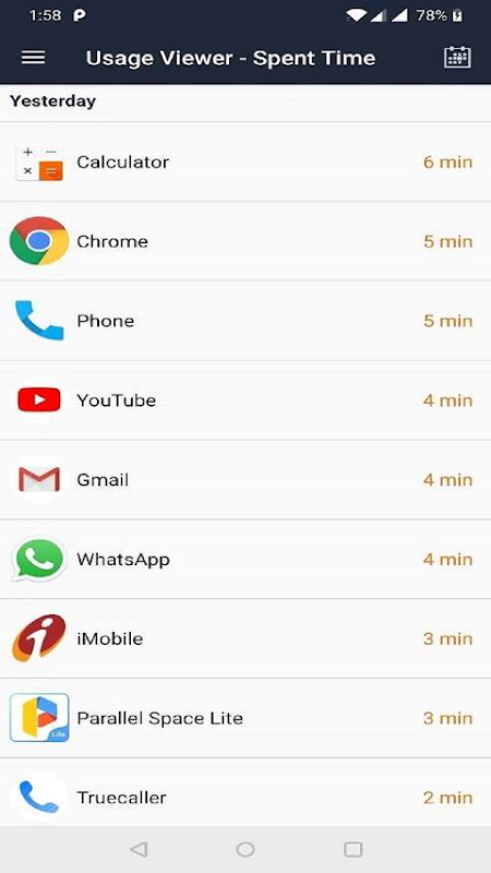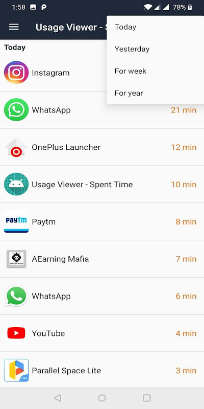 Android Usage Viewer - Spent Usage time on Apps