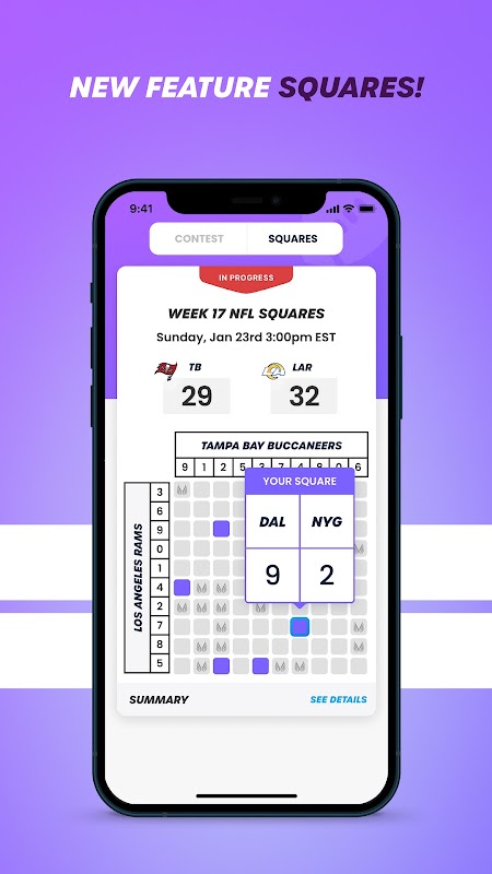 - Sertai atau cipta permainan pick em' yang menyeronokkan dan ringkas untuk berkongsi dan bersaing dengan rakan, keluarga dan rakan sekerja semasa acara sukan secara langsung, termasuk NFL dan NBA akan datang tidak lama lagi