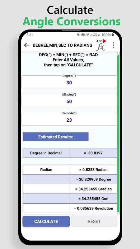 ► alat Kalkulator Sudut yang berkuasa untuk melaksanakan operasi Sudut setiap hari.