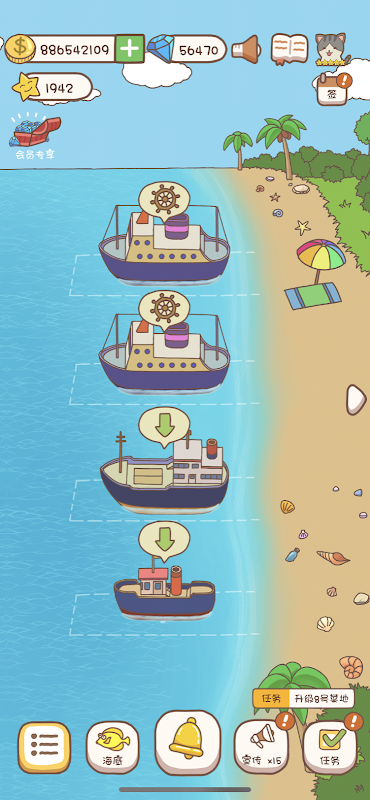 Apabila tahap mencapai ketinggian tertentu, anda boleh membuka pelabuhan dan menghantar barang ke luar negara, supaya anda boleh mendapatkan permata dan syiling emas serta penilaian.