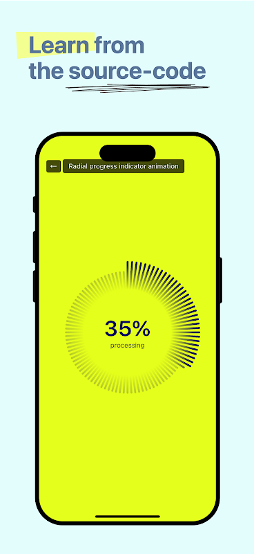 Apl AnimateReactNative mempamerkan setiap animasi yang tersedia di AnimateReactNative.com, membolehkan anda melihat setiap animasi dihidupkan terus pada peranti anda.