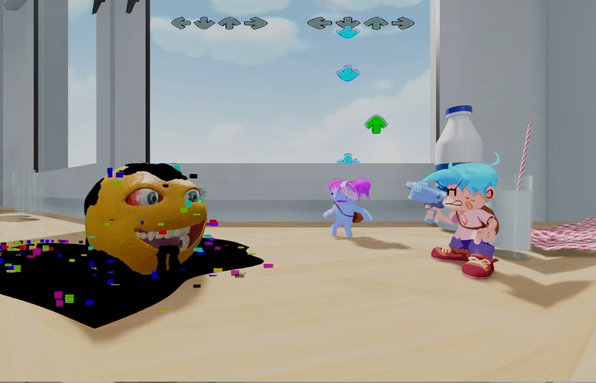 All you got to do is tap the arrows perfectly when they match with the Annoying Orange 3D VS FNF Corrupted song in order to have the highest score possible and win the music battle.