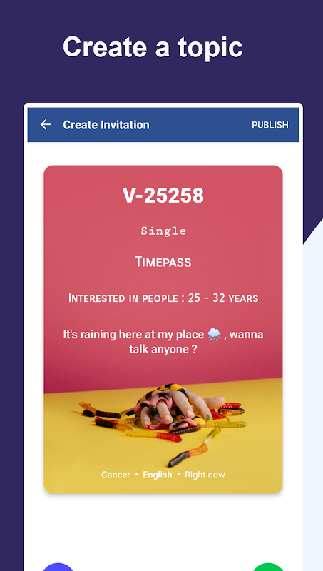 Anonymous Chat is a one to one chatting app. The app lets you talk with strangers all over the world with a single tap. You can make new friends, meet new people, share your ideas with people from foreign countries and can even date. Your identity on the app remains anonymous and No login or sign up is required. Its like a Chatroulette. Just start with a nickname. The app can be used by people of all sexual orientations.