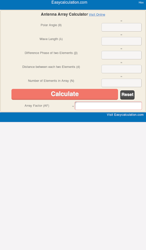 Online Antenna Perlengkapan Kalkulator untuk mengira antena faktor lokasi.