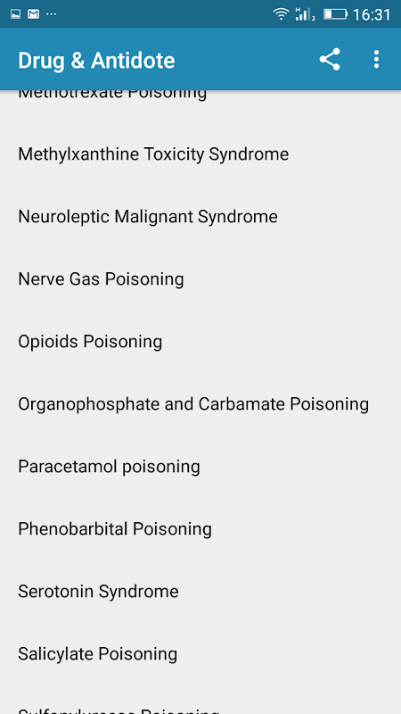 - Satu senarai keracunan dadah
